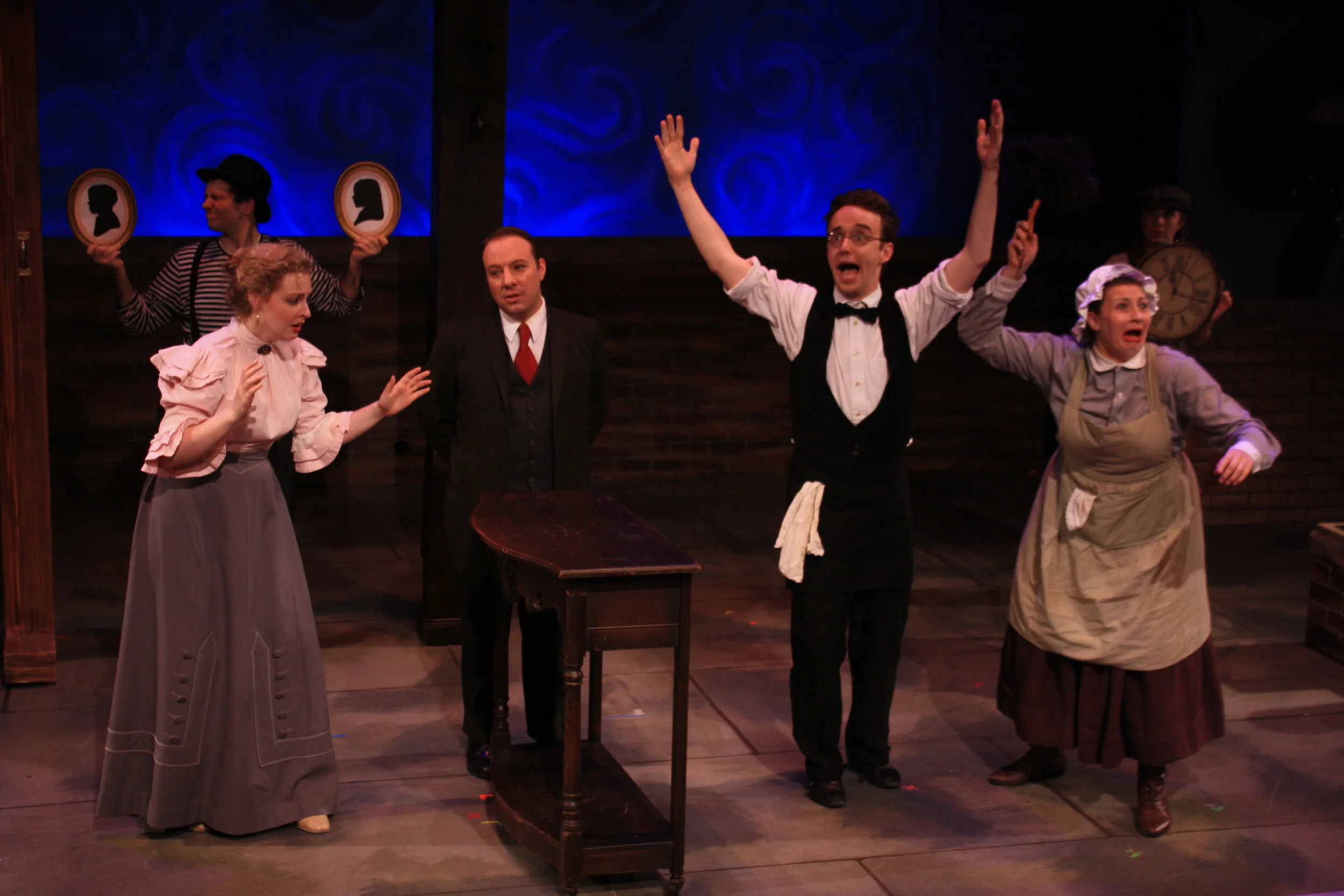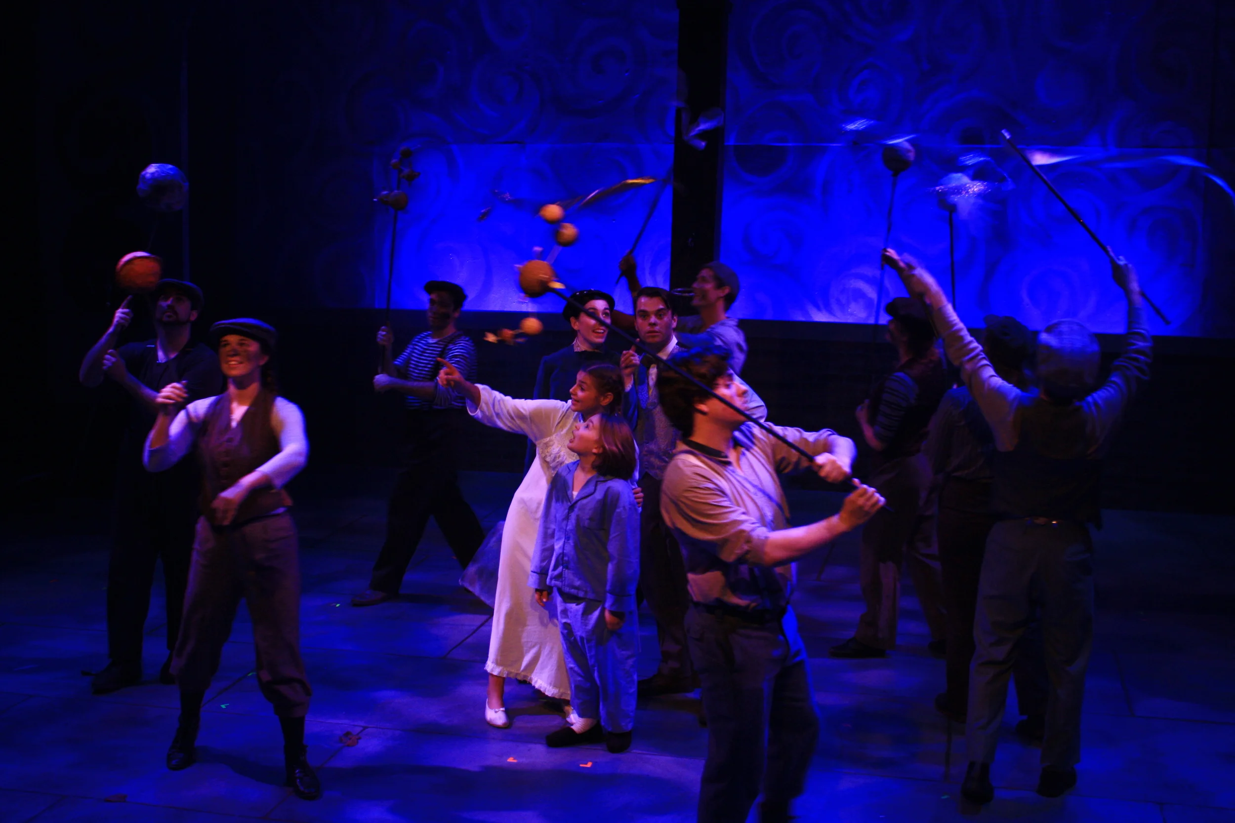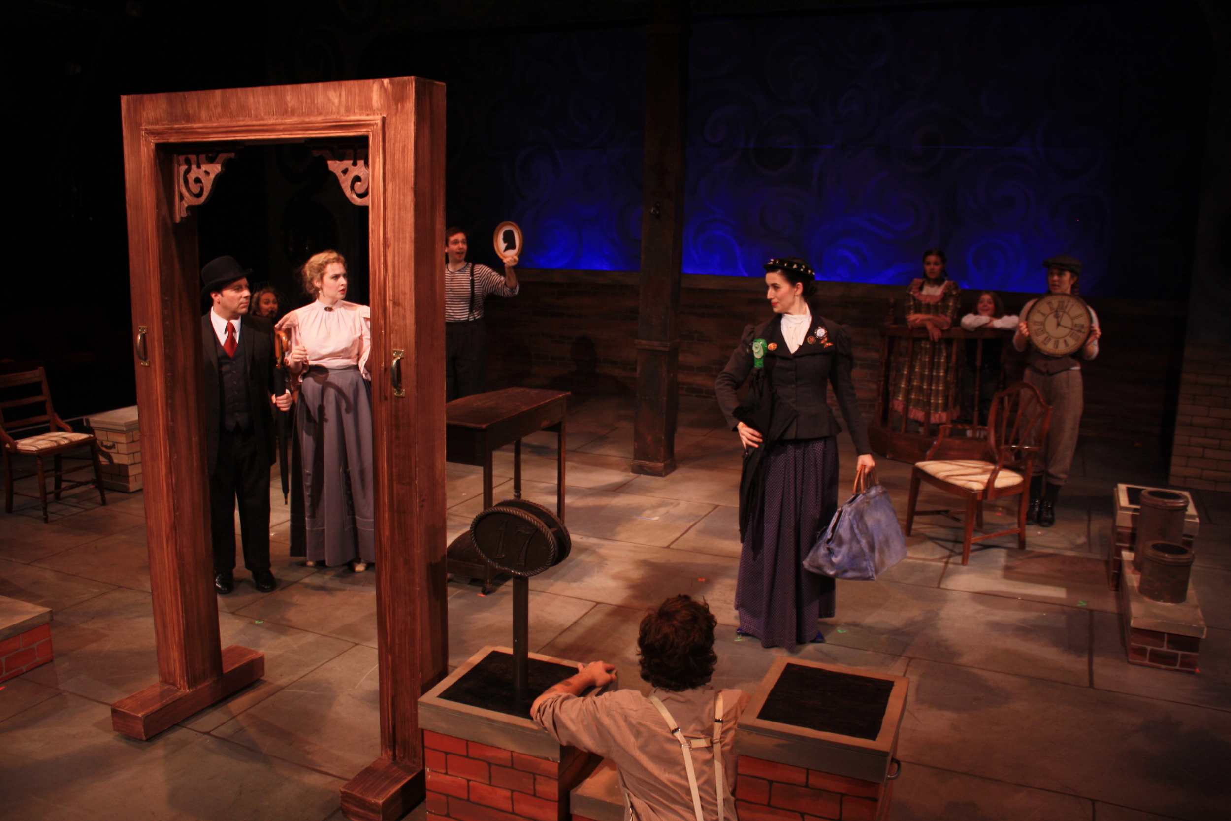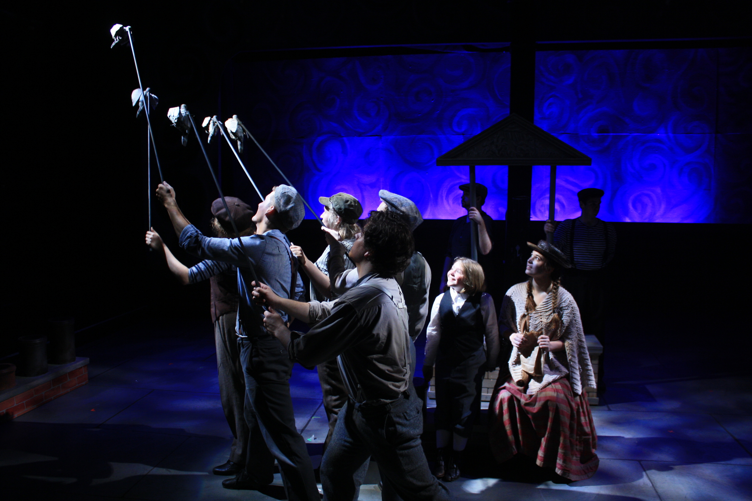 Mary Poppins at Millbrook Playhouse was such a magical production for me and all involved. I wanted to focus on the upheaval that Mary caused in the Banks Family's lives. We typically think of Mary as practically perfect, but the fact is throughout the script she proves herself to be stubborn, direct, hard-lined, and unyielding. She ruffles everyone's feathers--and it's because she knows this family needs to learn some lessons and knows it's not easily done. We focused on the theme of 'Change' and how change can be painful and uncomfortable but ultimately necessary. The image I used with the team was an orderly office with every paper in place when all of a sudden the windows get thrown open letting in a huge gust of wind. Papers are thrown everywhere--it's chaos for a minute. You are then forced to deal with reassessing how you've put your desk together. You're grumpy because you NEVER would have gone to the trouble to start over with your organization--but the wind forced you to. And at the end, you realize you've put everything together in a way you didn't see before. So that was Mary: she was the wind in our production. She comes in and shakes everyone up. We extended the metaphor into performance and design by detailing a universe where the audience can see how Mary achieves her magic. I used my Ensemble--whom we lovingly referred to as Guardians (taken from Chim Chim Cheree: "Now guardian angels you don't often see...they're covered in soot and they're up on your roof.") to be the embodiment of Mary's magic. So they moved our minimalistic and fragmented set pieces in the midst of the action and created all the "magic" for the characters in full view of the audience. Our production therefore, in contrast to the original Broadway, felt highly theatrical, minimal, and abstract while adding to a different sense of magic, wonder, and playfulness for the audience.